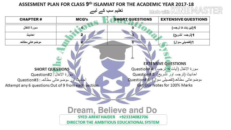 Image result for 9th class islamiat paper scheme 2019"
